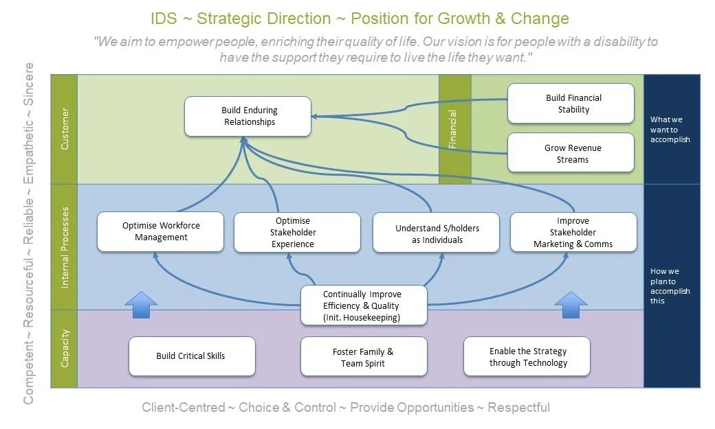Going back to my original question, ‘where do you start when creating a strategic plan?’ The answer was to start with our purpose, the very reason IDS exists. This required having a clear vision of our purpose and knowing that from an operation and Board perspective, everyone was aligned.